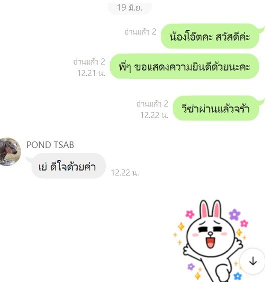 หลังถึงแล้ว ยังทักมาถามไถ่เรื่อย ๆ มีอะไรติดขัดก็ส่งข้อความปรึกษาได้ตลอด รู้สึกเหมือนมีพี่เลี้ยงอยู่ข้าง ๆ