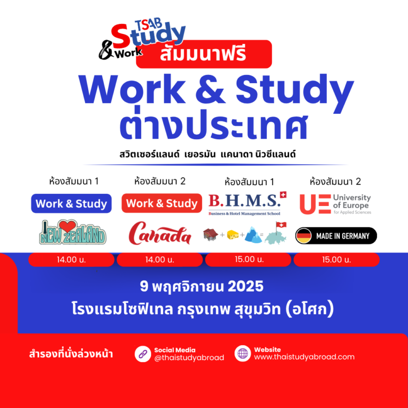 สัมมนา เรียนพร้อมทำงานประเทศสวิสเซอร์แลนด์ (สัมมนาฟรี รับจำนวนจำกัด 10 ที่นั่งเท่านั้น)
