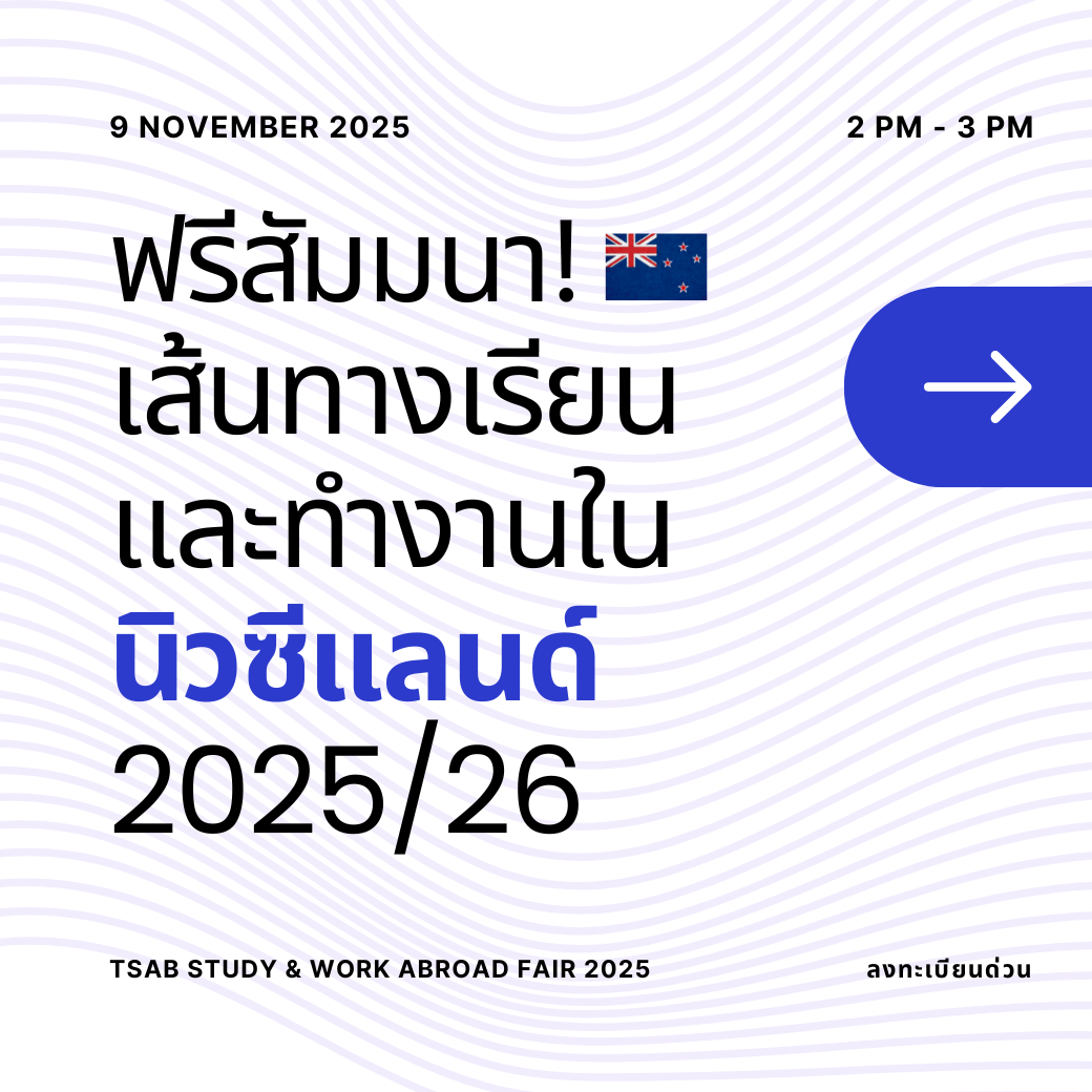 9 พ.ย. 2025 สัมมนาฟรี! เส้นทางเรียนและทำงานในนิวซีแลนด์ 2025/26