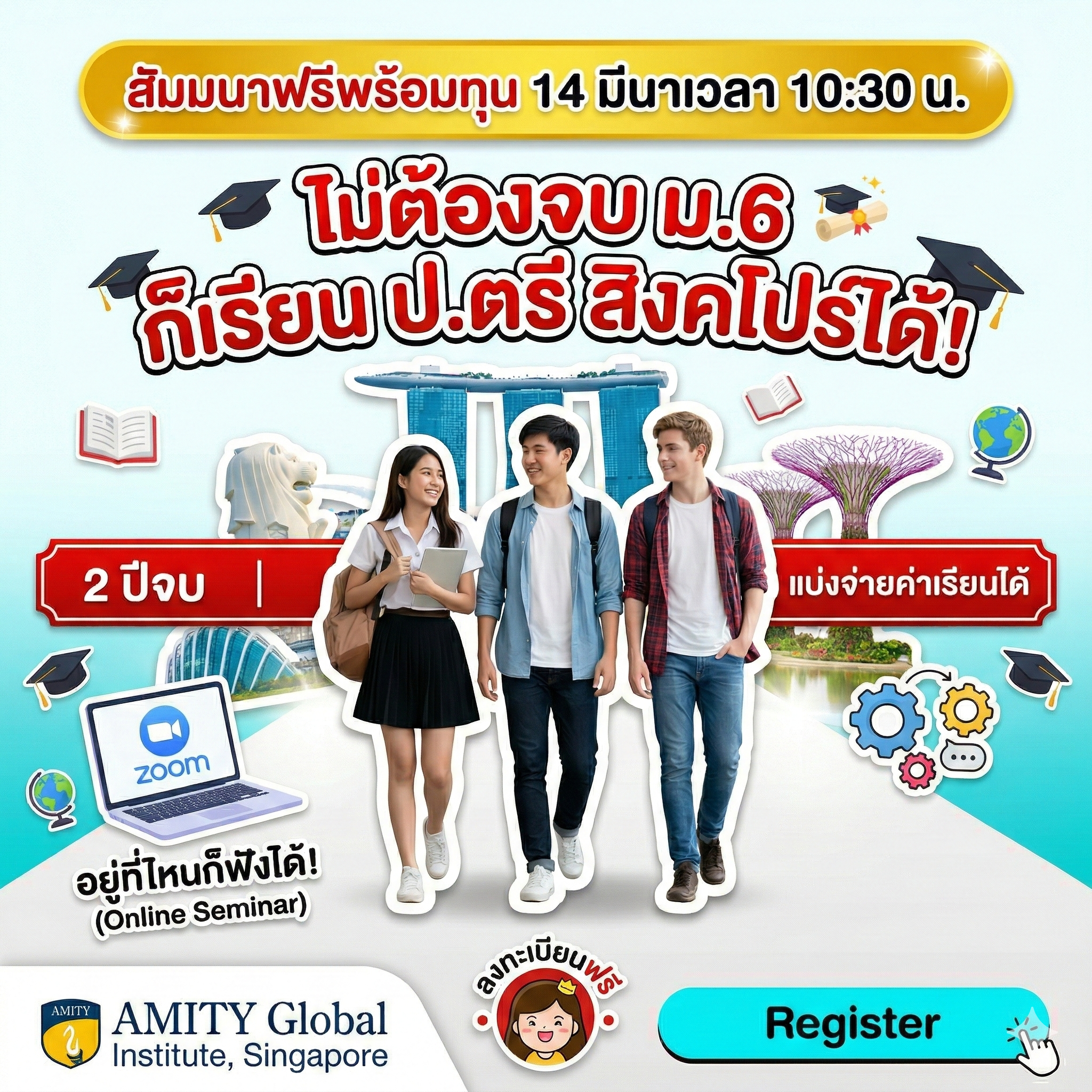 ขอเชิญเข้าฟังสัมมนาทุนเรียนต่อสิงคโปร์ ผ่าน Zoom